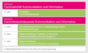 Im zweiten Ausbildungsjahr absolvieren die Schülerinnen und Schüler während vier Wochen ein Berufspraktikum im Kommunikationsbereich. Dieses Praktikum bietet die Gelegenheit, erste Erfahrungen im gewählten Berufsfeld zu sammeln.